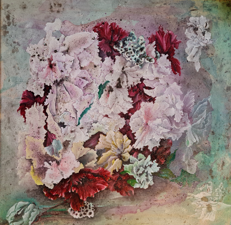 aus dem Garten III, mixed media a. LeinwandFudji, mixed media a. Leinwandaus dem Garten II, mixed media a. LeinwandSerie Blau / Grün, mixed media a. LeinwandPäonie kl. 1, mixed media a. LeinwandStillleben, mixed media a. LeinwandSommer am See, mixed media a. Edelstahlaus dem Garten, mixed media a. LeinwandFluß mit Steinen, Öl a. Leinwand
